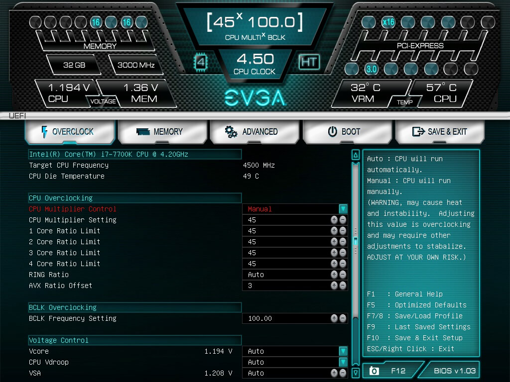 The main screen of your BIOS and surely overall look may look slightly different but I did want to start off by mentioning, I did over click the CPU, the Intel Core i7 7700K to its Max Turbo Frequency but nothing else was out of specification within the BIOS configuration. The stock speed of this processor is 4200Mhz, the Max Turbo Frequency is 4500Mhz.