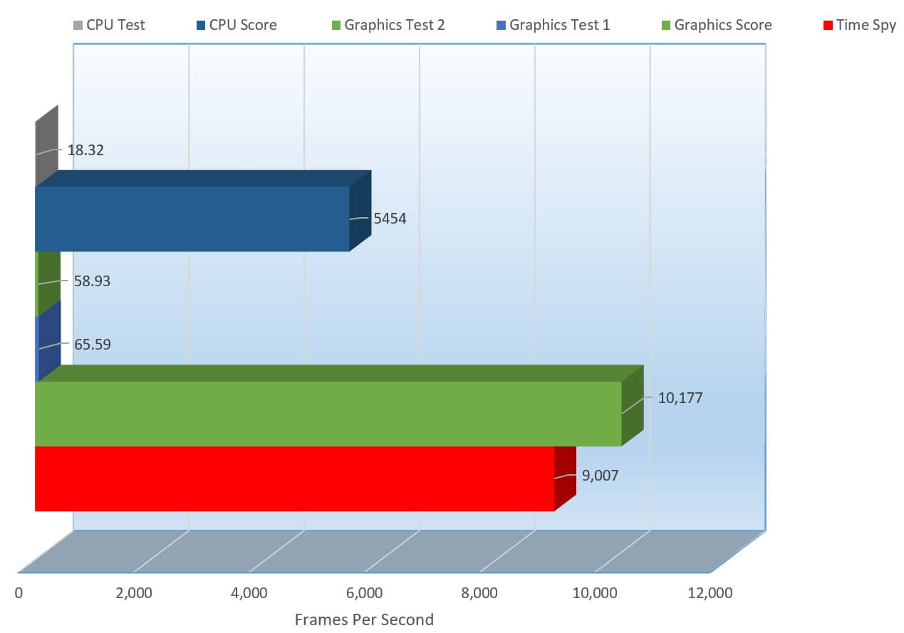 Time Spy, like 3DMark, is mainly used for gauging graphical performance of your system but system RAM plays a decent hand in this. While graphic test mainly used Video RAM, or in this case GDDR5, while these tests are running, the overall system gets put in a bit more strain. Utilizing resources like DirectX, Paging File, Hard Drive, the PCI-E slot, Motherboard, RAM, Video Ram, Video Card, Power supply and more, below shows a Task Manager View of a run of Time Spy.