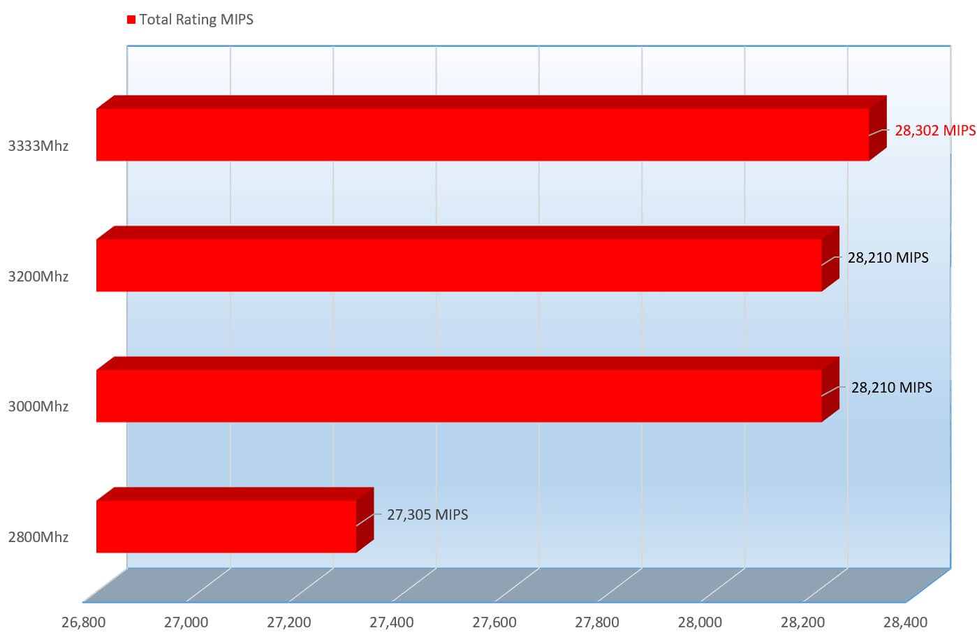 Like you would expect, in this round up 3333Mhz came up on top, with the best performance. A bit odd considering the 3DMark results with a bit varied not so much here.