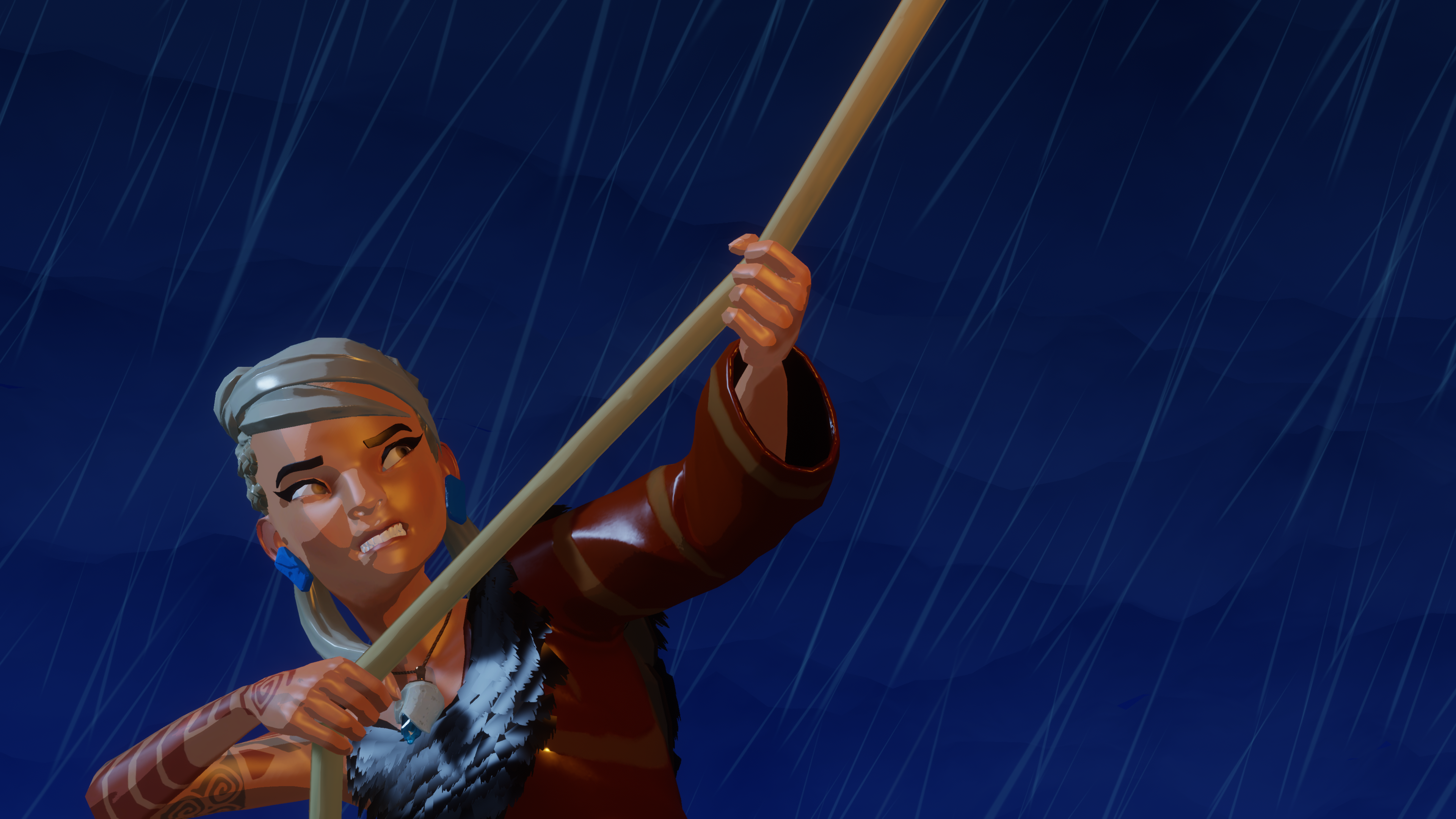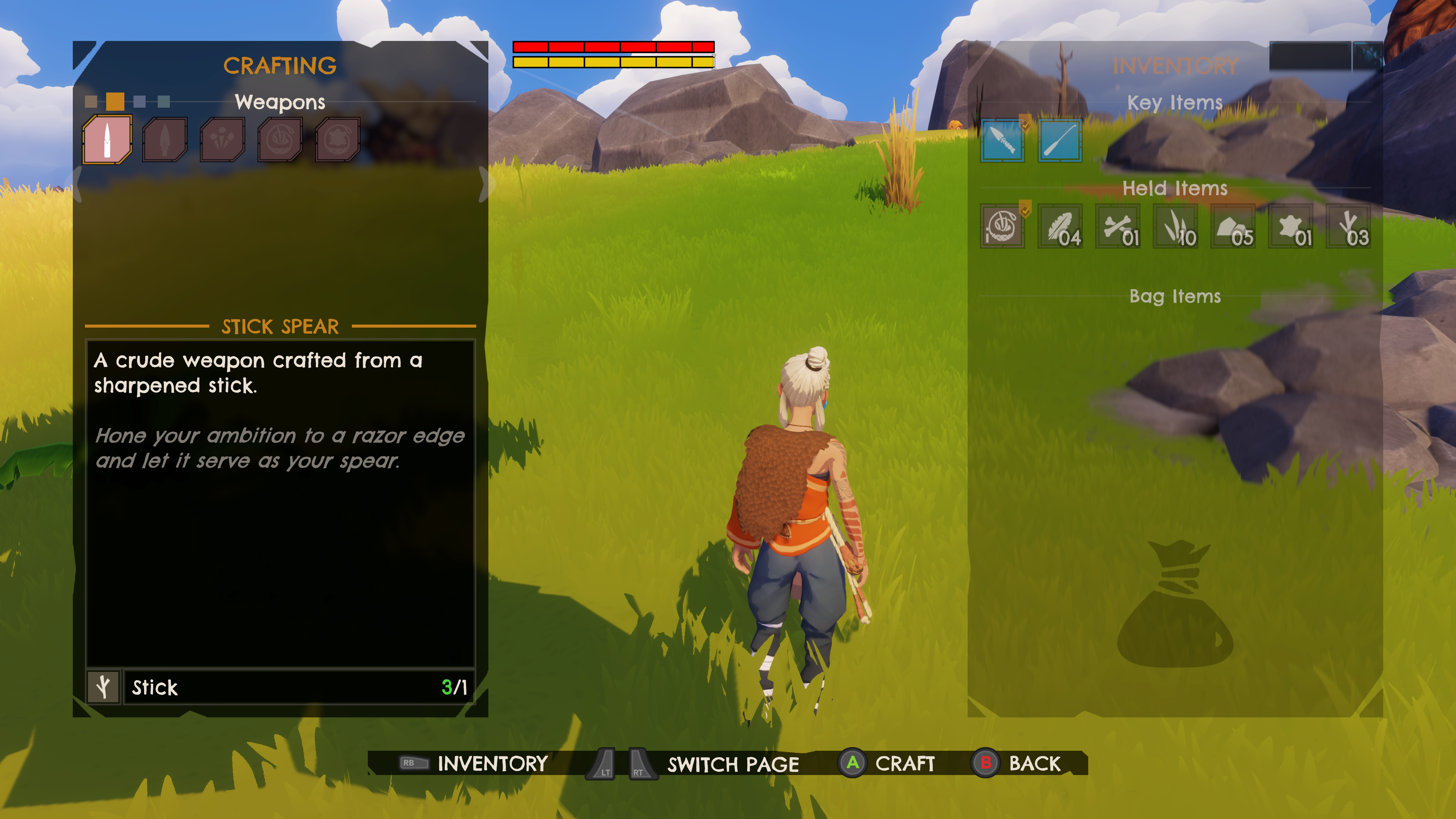 On my playthrough I opted for Storyteller and for those looking to appreciate the story without fear of starting all over is what I would absolutely suggest. The gameplay itself takes a lot of hints from Zelda such as being able to lock on to enemies and move around them as well as being able to dodge, however, I felt that Kara’s movements were rather slow and sluggish especially when using weapons such as a spear of which you’ll have to get in quite close to attack any creatures along the way. Fights in the game are very risky in the sense that you won’t be very powerful in this game and you’ll end up risking your health and your hunger which also serves as your stamin where you’ll end up having to take these risks in order to gather food and other supplies along the way. That’s right, this game also takes a page from Breath of the Wild in the sense that you will in fact be having to craft items such as an axe to gather wood or a a pick axe for stone and various other materials. Since Windbound is a game in which you will be on the water you’ll also have to craft your own boat which come in various forms and there are sharks and various other creatures in the water that can not only easily kill you, but also can take out your boat in one hit.