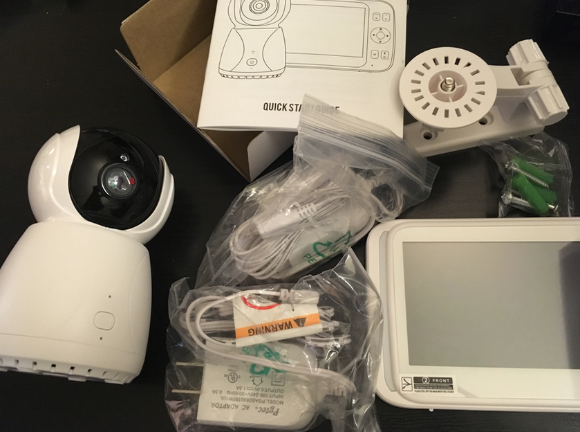Once you take it out of the box, you plug the right cords into the right pieces. Make sure to use the right camera cord into the camera and the right monitor cord for the right monitor. There’s a quick start guide to get you using it within minutes. You have the option of syncing four cameras, depending on how much of a view you want in the room.