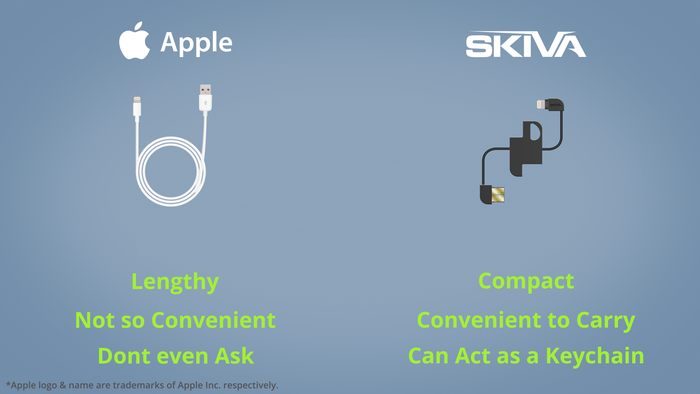 Skiva Technologies has developed a foolproof solution to forgetting and misplacing costly connector cables. Cord2Go is a Lightning Port to USB Sync and Charger cable for Apple’s mobile devices like iPhone, iPad, iPod and other Lightning port based devices.