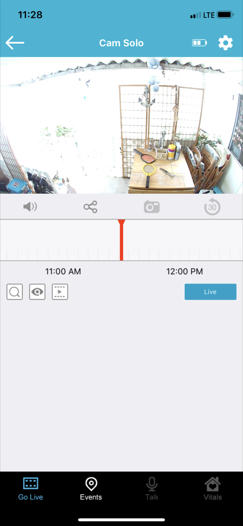 You can monitor all of your events from the Spotcam app as well and even download events to your phone from the cloud. Note, if you have no events setup and you forget to set your recording to cloud or MicroSD card you will see what looks like below without any events listed in the timeline.