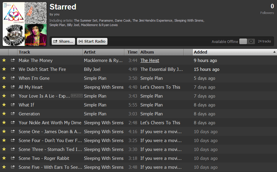 If you like a song, you can either add it to a predetermined playlist that you create yourself or you can “star” it so you can easily get back to it later. I personally use both the “starring” method (screenshot above) and the playlist method to store and manage my music collection. I like that I can sit down on my computer and make up a playlist of 50 songs, then get in my car, plug my phone into the auxiliary port, and play the playlist I just made.