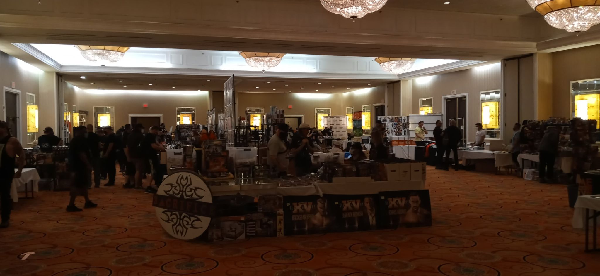The Squared Circle Expo was a two-day long event that took place at the Wyndham Indianapolis West hotel which happens to be a rather popular setting for some conventions/expos with shows such as Horrorhound and also local conventions such as Starbase Indy, the Wyndham Indianapolis West may not seem like a very big location but it makes for a rather perfect location for these smaller, more intimate type of shows such as SCX. The layout was a rather simple one and one that I have somewhat grown accustomed to when attending other shows at this venue, with one main expo hall with a decent amount of vendors with a few guests sprinkled in. This area was essentially the main entrance to the show from the hotel lobby and a great way to pick up some pretty sweet merch, but even before you got to the expo hall which requires badge entry, there was a table set up for you to purchase SCX merch from t-shirts to masks that were branded with their logo. The expo hall was very nicely sized with tables lined all along the outer perimeter and a few tables set up in the middle with about six to seven guests all spread throughout this room with guests such as Dan “The Beast” Severn of UFC fame all the way to WWF Hall of Famer Jake “The Snake” Roberts. In the back of this room was another exit which led to a hallway where you would find a few more merch tables such as Pro Wrestling Loot which I decided to pick up a luchador mask from.