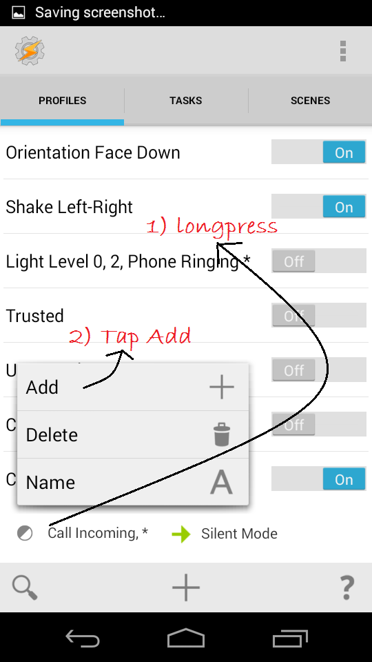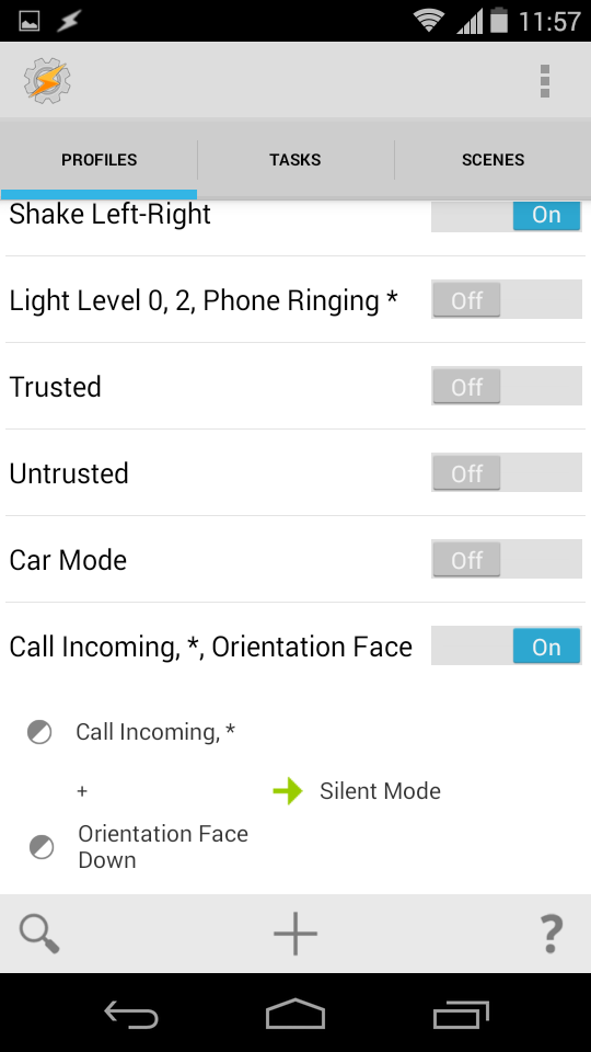 Now when your phone is ringing, and you place it upside down, all the contexts of this profile would be active and it will trigger the silent mode task.