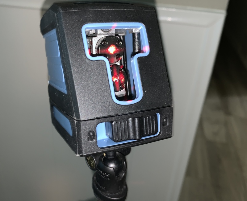The product has a 3 in 1 option to where you can do vertical line, horizontal line or cross lines when it comes to projecting a laser line across your wall. and it can deliver the beam up to 50′ distance. In bright daylight with curtains and windows open you can very clearly see the laser line on the wall without issue.
