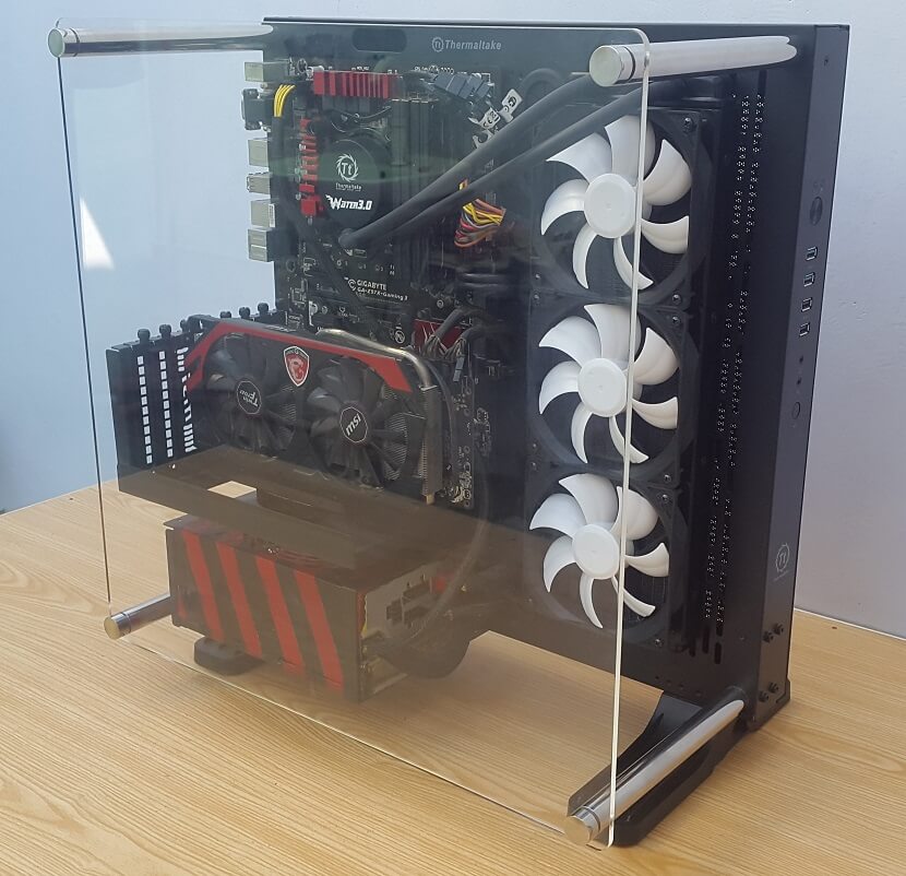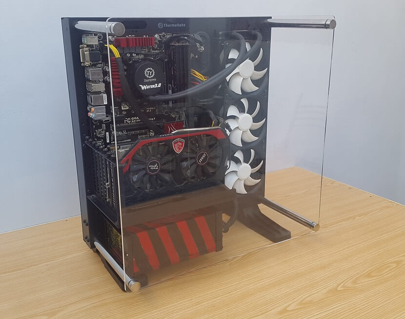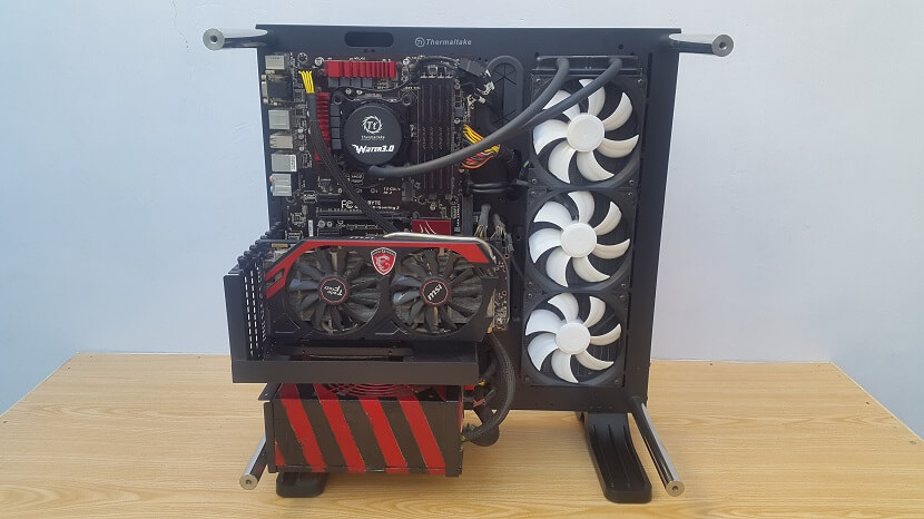Building my PC with the Core P3 was really easy as there’s nothing to hold me back from viewing any angle or approaching tight space, oops, forgot, not much tight space in this chassis :D. The true beauty of this chassis lies in a custom water loop but even without much high-end parts and LEDs, the Core P3 look awesome and neat. To add some more ugliness, I used a semi-modular custom painted Chieftec Nitro 85+ Bronze 1200W with branded cables, but even with that, the build looks pretty neat and a lot better than it would in any other chassis (maybe exaggerating??)