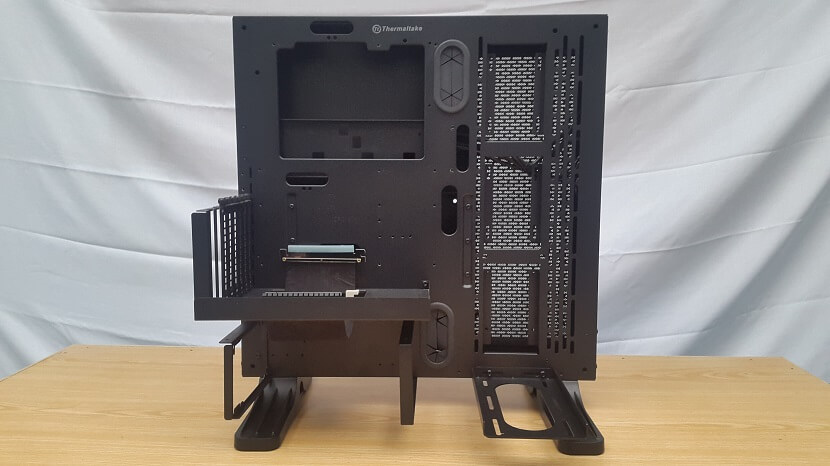 Even though it provides freedom for so many things, I did find a few cons about the chassis. Let’s start with the back panel. Once the rubber feet are installed at the back, the upper back feet (in vertical position) prevents the back panel from locking in perfectly. I think it’s getting stuck in the drive cage. I was unable to install the screws on the back. To make the back panel sit perfectly, I had to unscrew that particular foot, then slide the back panel in and it went in correctly, then install the rubber feet. That’s one thing that Thermaltake needs to look at.