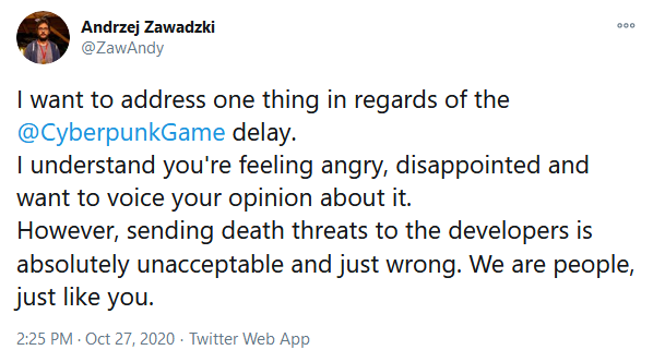 Time crunches in the video game industry is nothing new. There were multiple reports of time crunches after the release of Rockstar Games Red Dead Redemption 2, of employees being treated poorly with some even needing to work overnight and stay in their offices just to make sure the game had a timely release. While I understand the want to have a game be as near perfect as possible when it releases, developers do always have the option to have a patch come out later to fix any bugs or glitches post-release of a game. CD Projekt RED has also been receiving death threats due to the game being once again delayed. Senior Game Designer at CD Projekt RED, Andrzej Zawadzki, decided to take to Twitter last week to address the fact that he and many others working on the game have been receiving death threats by asking for basic human decency in regards to the team working on the game. I firmly believe that death threats are never a resort when speaking out against game delays and those that do this very thing is pathetic.