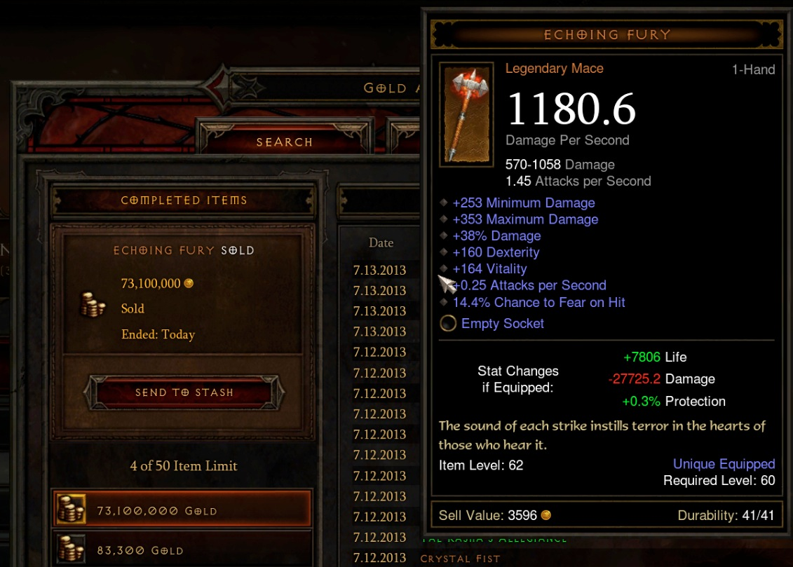 7. Echoing Fury Mace | Diablo 3 | $14,000