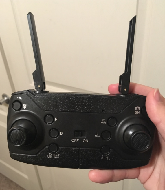 This drone being so easy to fly is one of the best parts about it. When you push the buttons to move it around, it doesn’t jerk suddenly, instead, it has a smooth flow so you’re able to control its movements. When it was windy it was hard to make it flow perfectly, but that’s usually the case with all smaller drones like this one. The STOP button worked fast and quickly turned off the propellers. The controller takes 3 AA batteries to work.