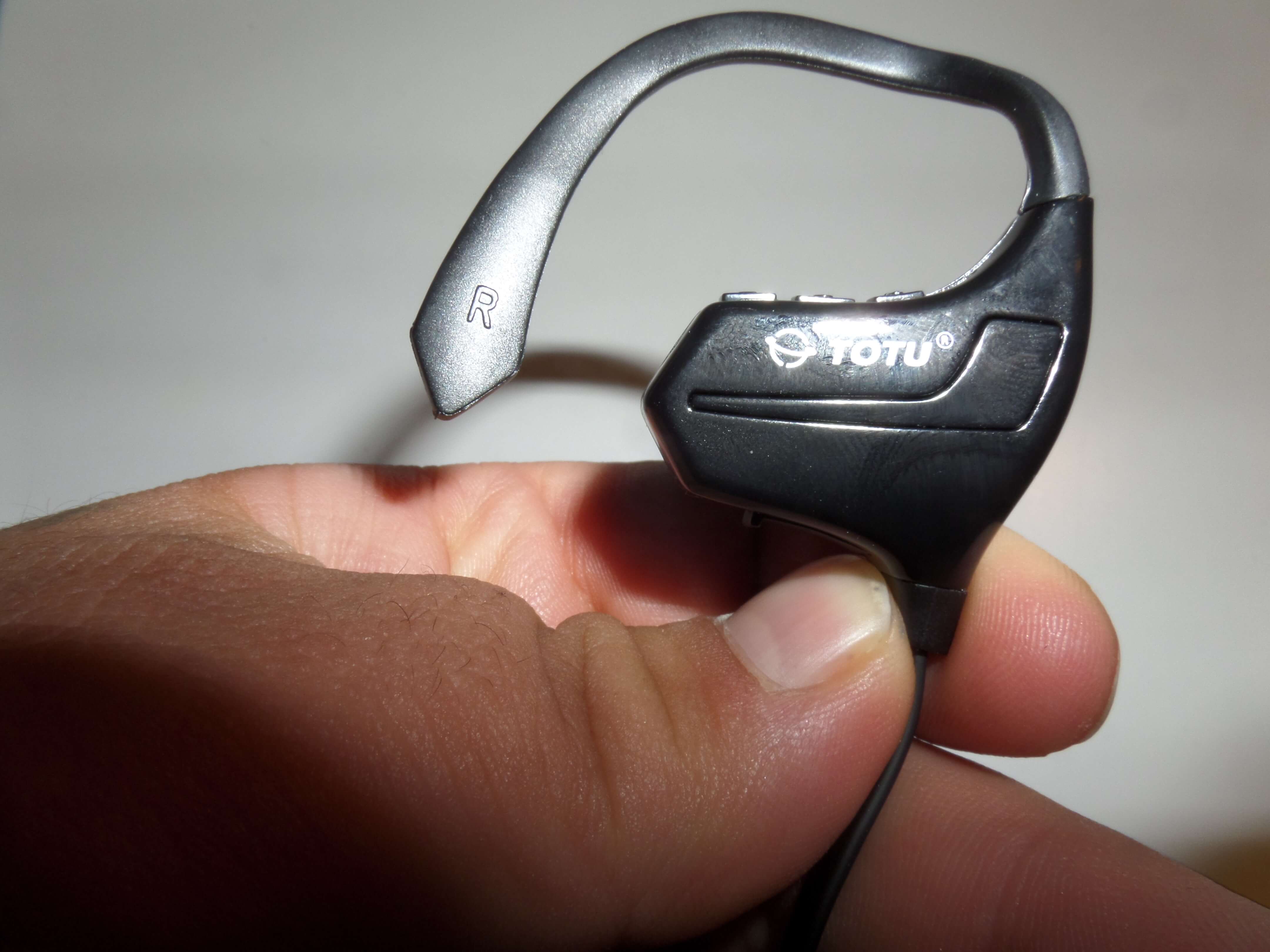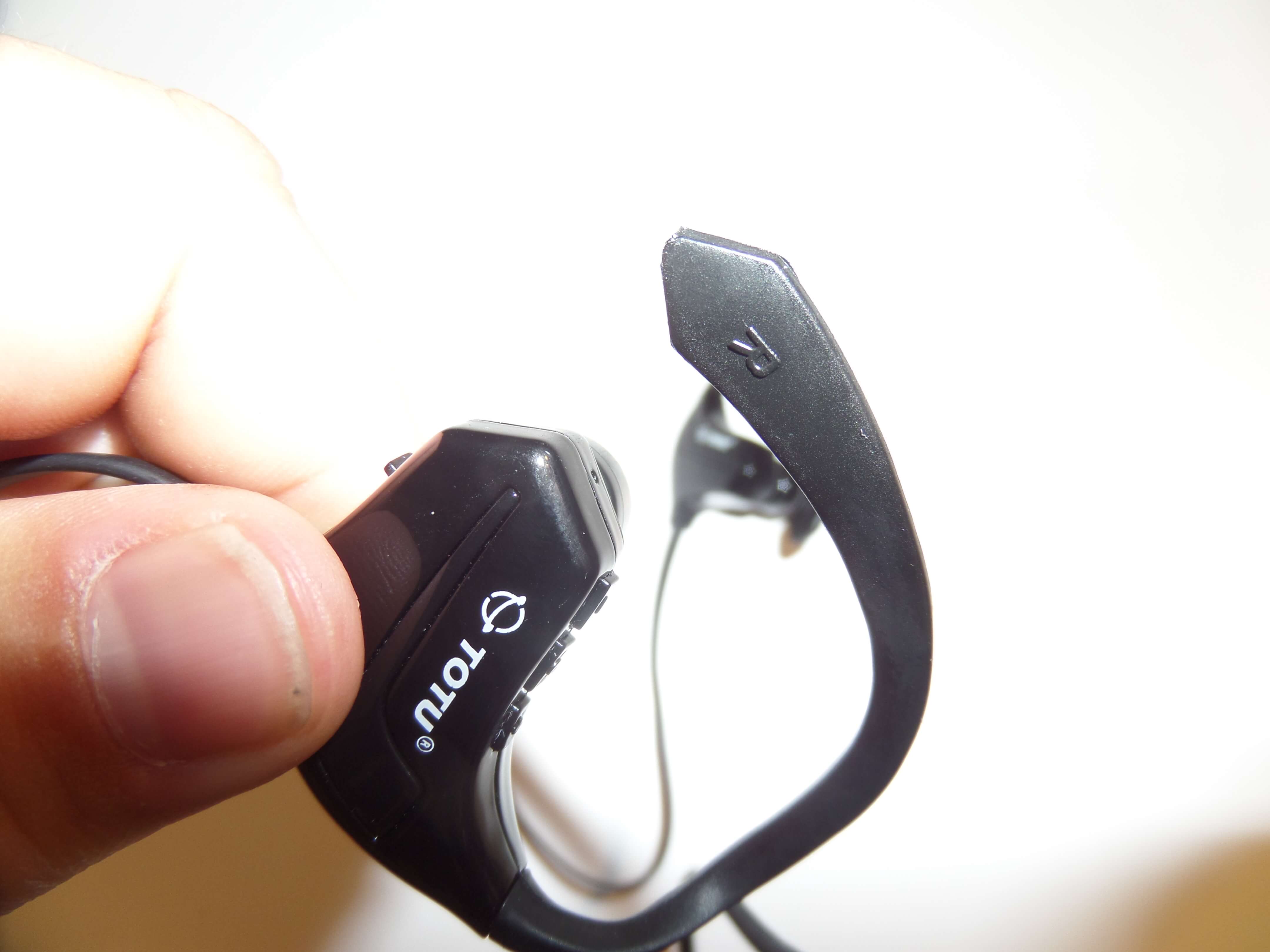 They claim it is waterproof. I would say that it is water resistant and sweat proof. I would not dunk these in the river. The headset is a sleek black color with a half shape hook that will loop around your ears. You also have a very nice length of cord that can reach around larger necks. I have had issues with other brands not having enough length and making me feel uncomfortable. Each side of the Earbud is labeled left or right with an R or L.