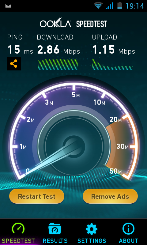This is the 3rd WiFi test, when I’m standing about 10 meters away from the router with two brick walls in between.