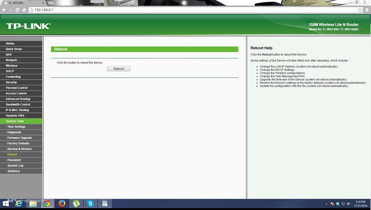 Make sure to save all the settings and don’t forget to reboot the device after first installation, or otherwise, some of the changes will not take effect. To reboot, go to System Tools> Reboot or do it from the back of the router.
