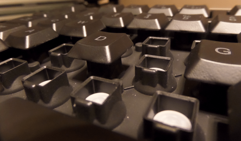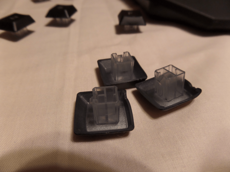 To further capture the light and I am sure aiding in keeping the keyboard dry, the keys themselves have a method of directing the light up to the cleared letter and blocking outside pollutants such as dust and liquid.
