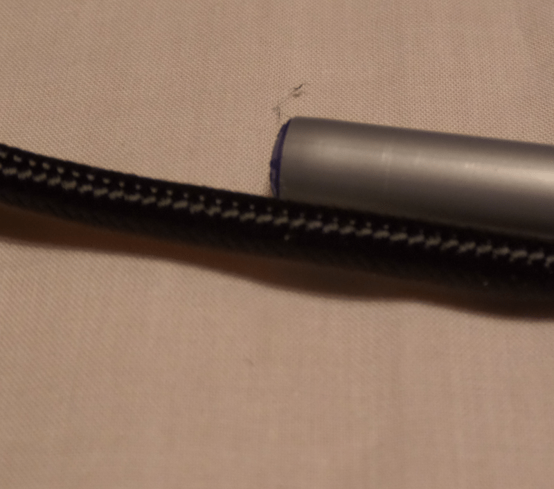 Here is also a picture to show you how beautifully braided this cable is and how thick as well. This is a picture of the cable next to the end of a pen, a standard ball point pen you can buy just about anywhere. The braiding was very tight and the cable, nice and thick.