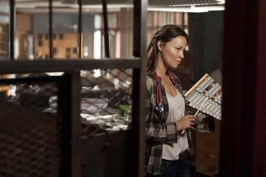 In Dr. Anne’s attempt at trying to “read” the Skitter ‘reactions’ in order to reveal something about why they were there—which is still is a mystery–didn’t tell her their plans anyway. Mason is still trying to locate Ben, who was abducted when the aliens invaded Earth, but first, they need to procure modes for transportation, because that old hooptie they’ve been riding in isn’t enough. Pope (Cunningham) tipped the 2nd Mass on just where they could find some motorcycles, that could be used when Mason makes the rescue attempt, again, at finding his son Ben. Pope, Mason, and members of the resistance head out to find the motorcycles—while Dr. Harris and Anne debate on the best way to interview or gather more intelligence from the prisoner.