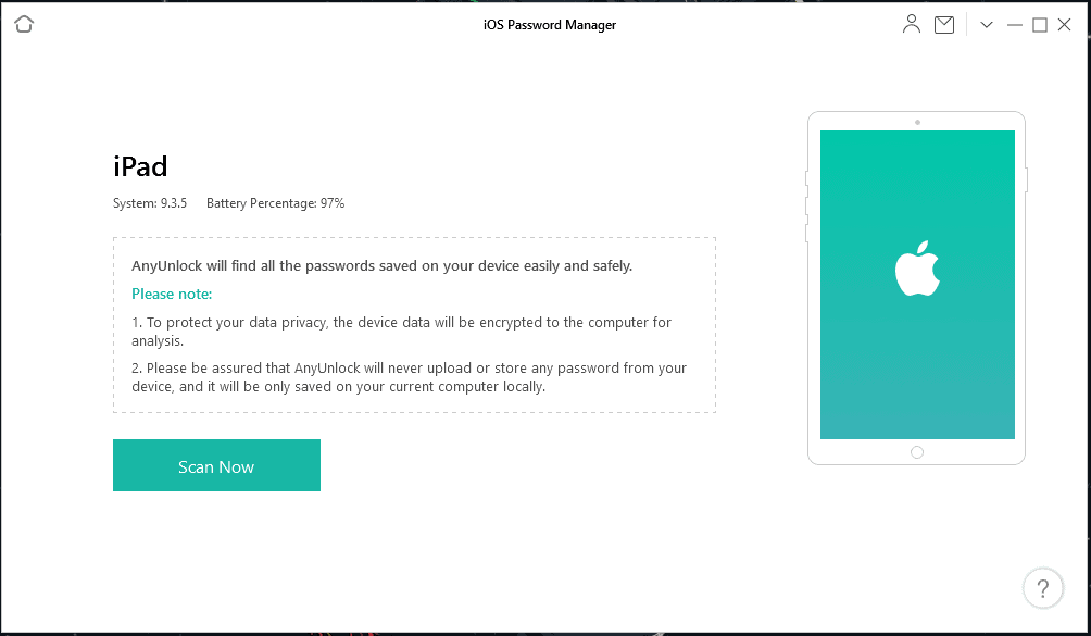 Step 1: Click on iOS Password Manager and click on Scan Now.