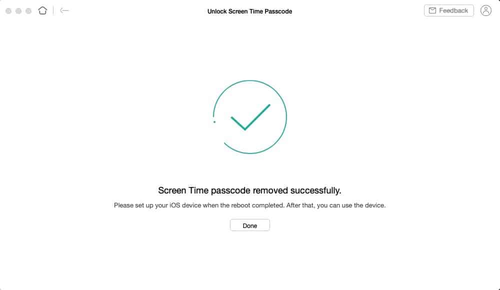 Step 3: AnyUnlock will start creating a backup and once it is done, you will be notified with a message that Screen Time passcode has been removed successfully.