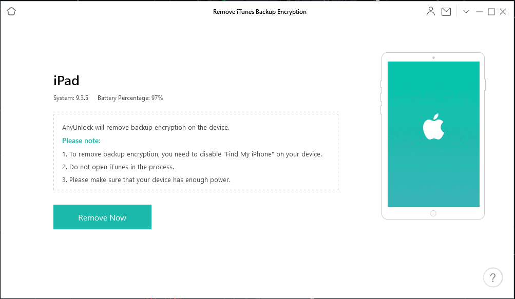 Step 1: Click on Remove iTunes Backup Encryption and then click on Remove Now.