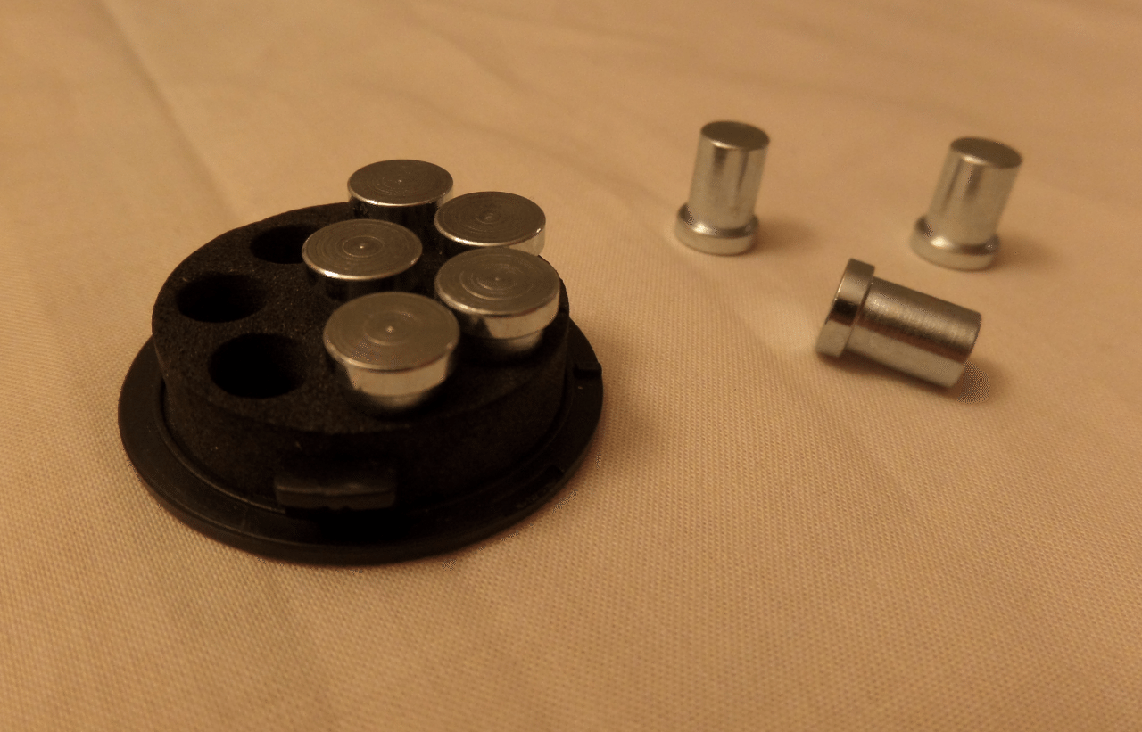 Locked and loaded and ready to go. Here are the weights, each weight is 2.4grams, and there are 8 of them totaling 19.2grams.