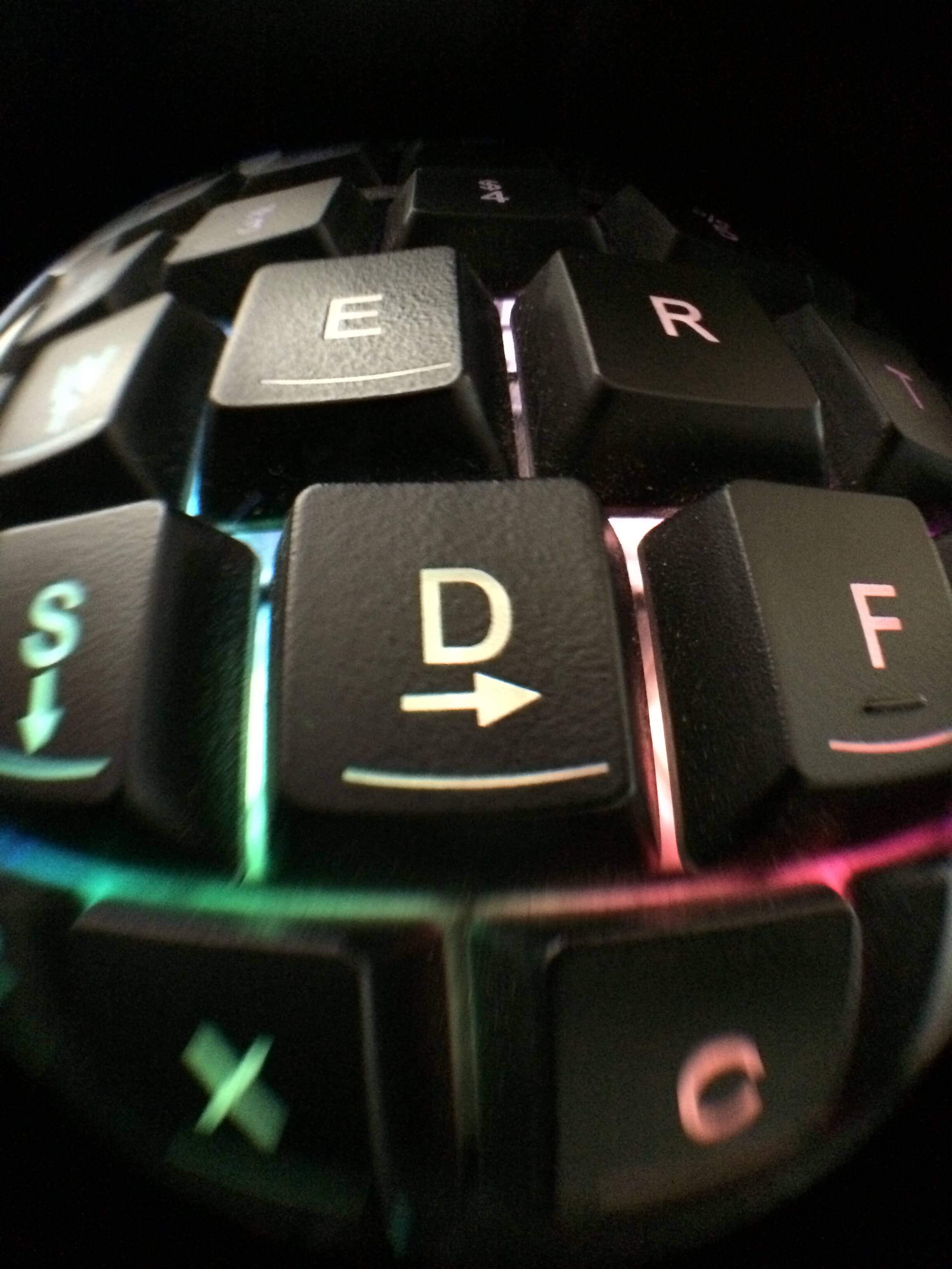 Fish bowl lens shot zoomed in on the UtechSmart Saturn keyboard D key.