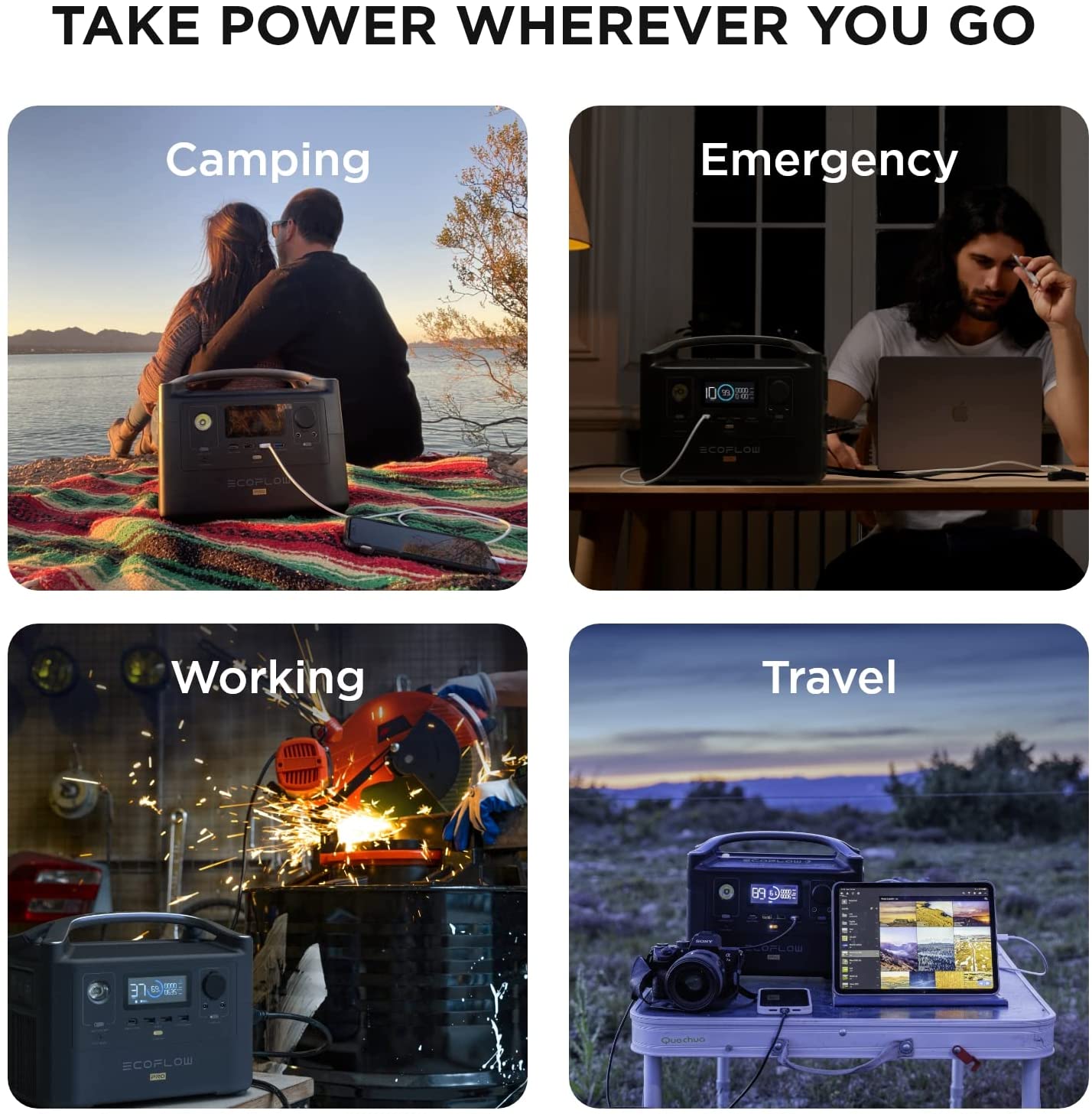 The products at ECOFLOW are engineered with one of the world best technologies for power station. The most outstanding and well-known one is the market-leading X-Stream. Back in 2017-2018, that’s when the company focuses on developing and releasing the X-Stream technology. Thanks to this technology, ECOFLOW’s products will have faster recharging time. Within an hour, your ECOFLOW’S device can charge up to 80%, even when it is completely empty. This allows consumers to maximize usage efficiency. At the same time, consumers don’t have to worry about transporting. They can easily access and connect to power from the solar energy or even from the car. The second state-of-the-art technology is the X-Boost. By using it, the generator can power devices up high wattage devices. This is a very essential feature, since it expands the range of devices that generator can support. With this high range of support, customers don’t have to worry about the compatibility between the ECOFLOW’s products and their own personal devices. The company offers various products that can suit different targeted consumer needs and lifestyles. The company has a crystal-clear vision about their targeted audiences: Home Users, Outdoor Users and Professional Users. As mentioned above, they use innovative and industrial-leading technology to achieve their goal: reinventing the way the world access energies. With that mindset, ECOFLOW starts off their line up with the ECOFLOW River series.