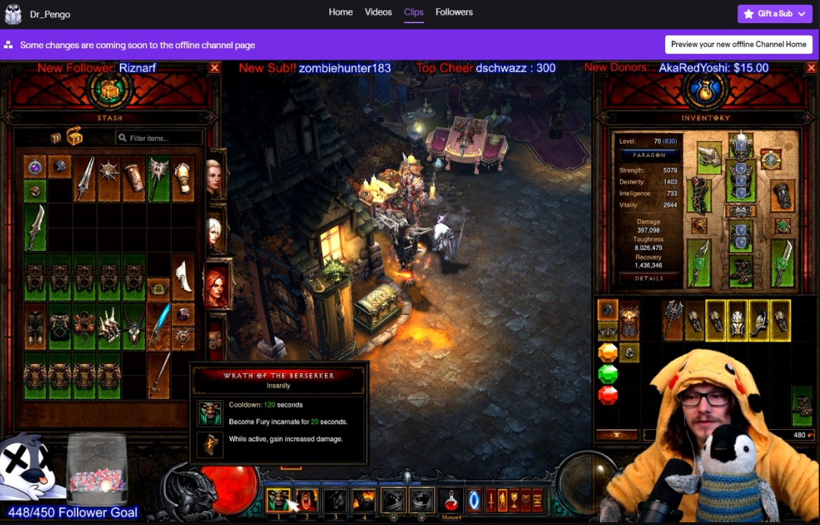 Hello fellow penguin people! My name is David & I have a Penguin Co-star named Pengo! Together we are Dr_Pengo. We started Streaming back in July 2019 & never looked back on this wild adventure. We are currently streaming survivor horror games & Action RPG around our busy Head Chef Job. So if you love penguins, high fives, & a super chill stream come check us out sometime! My plushy Penguin (Pengo) Gives high fives to people in chat, and people can redeem Pengo Cam, high fives, also Pengo gets wear his party hat!