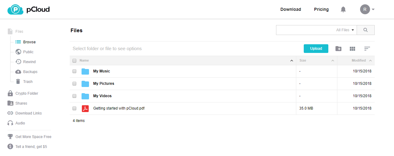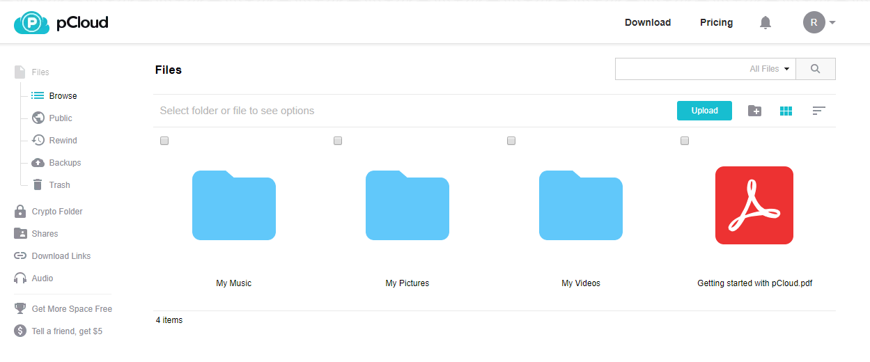 The pCloud website is very user-friendly. It is very easy to use and understand. The layout is very simple and is not clustered. Everything is indexed properly. There are two layouts to how you can view the folders- grid view and list view.
