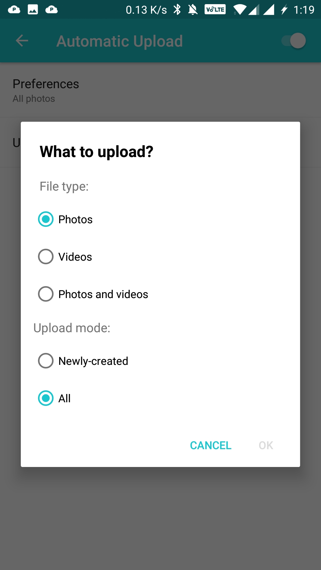 You can also choose if you want to upload just the images to drive or if you want to upload videos. You can also choose to upload both.