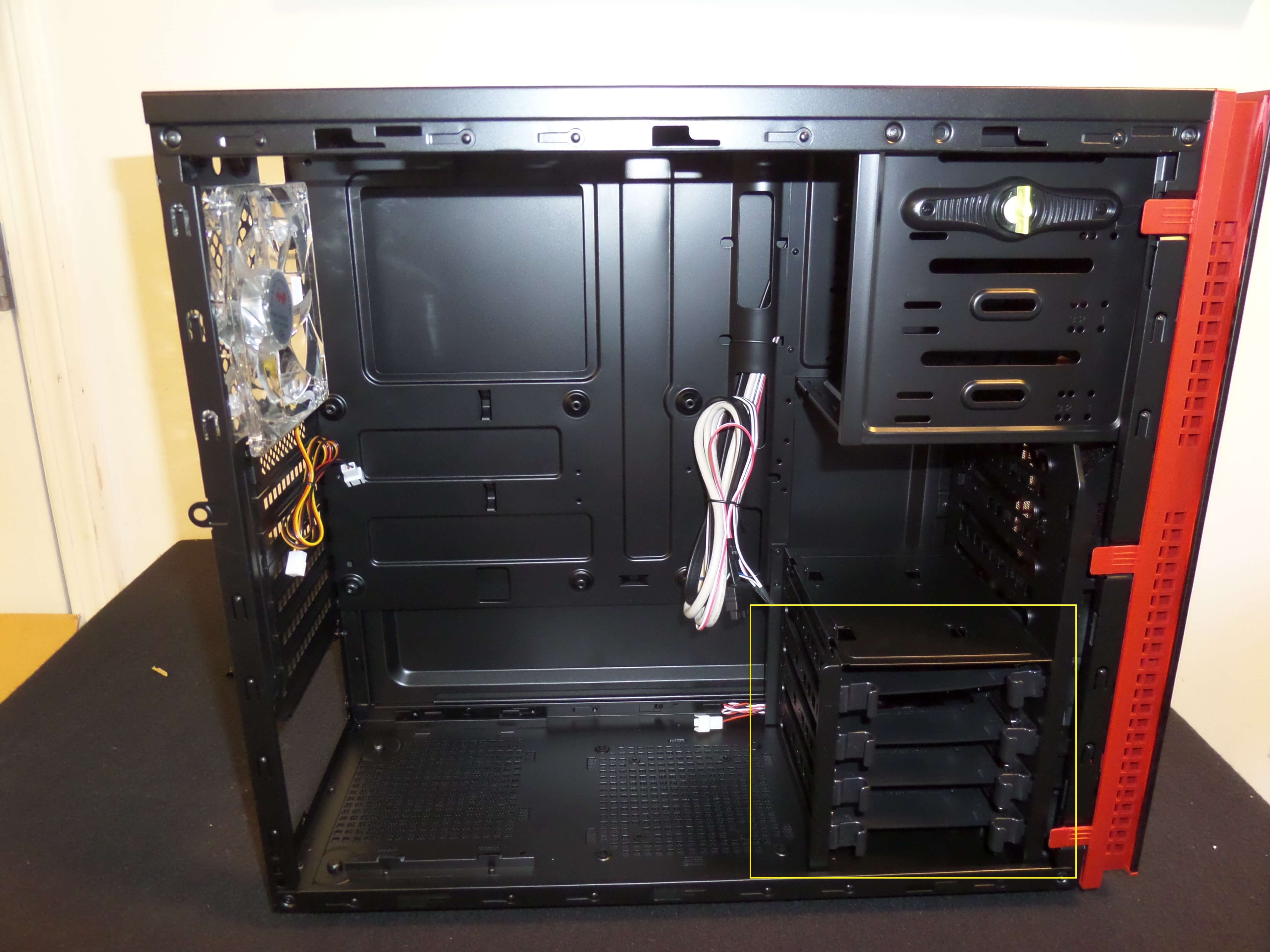 In the above picture it is labeled where you screw in the 2.5-inch drives. In the next picture, I will show you the side where the 3.5-inch drives connect.