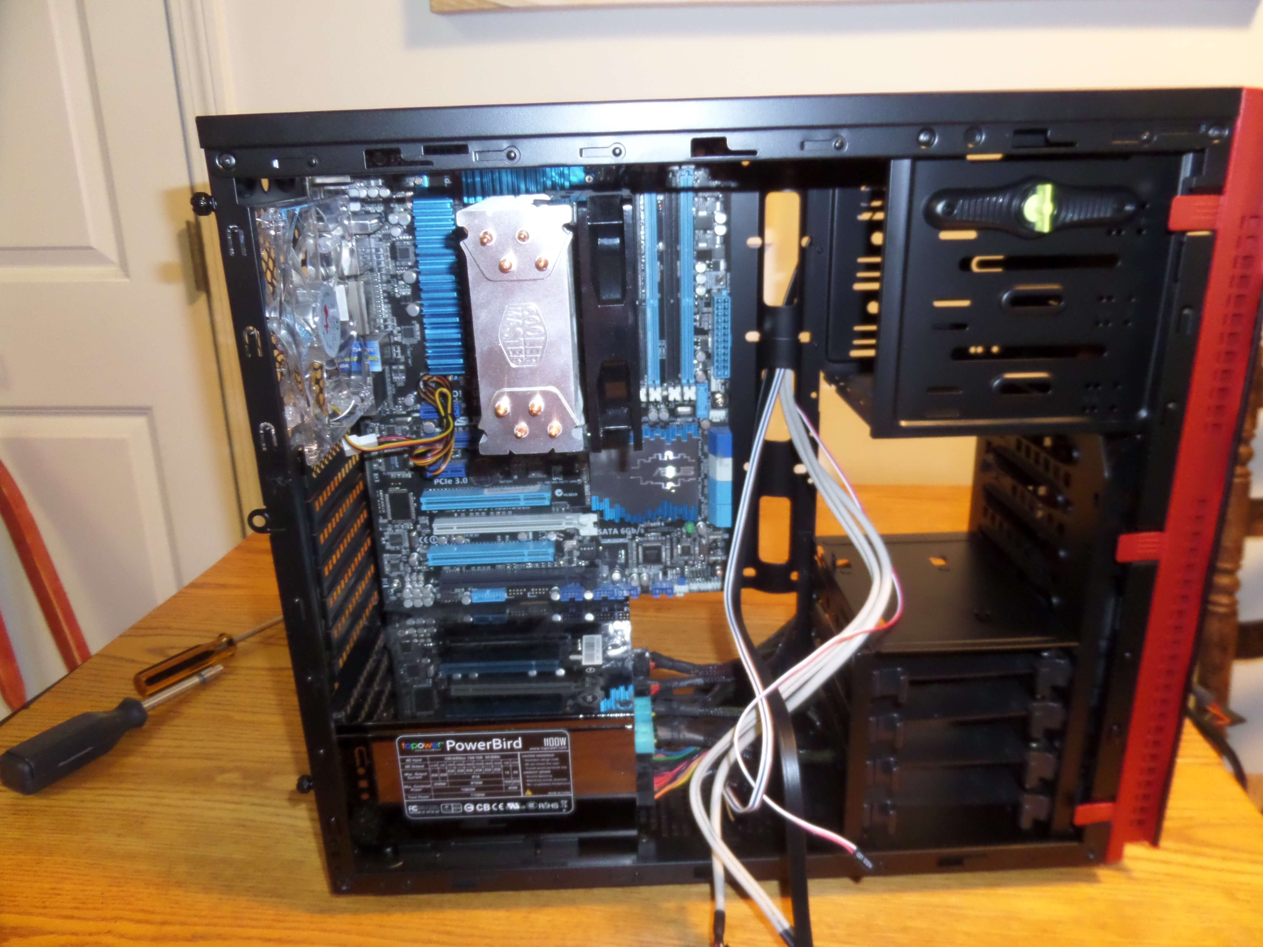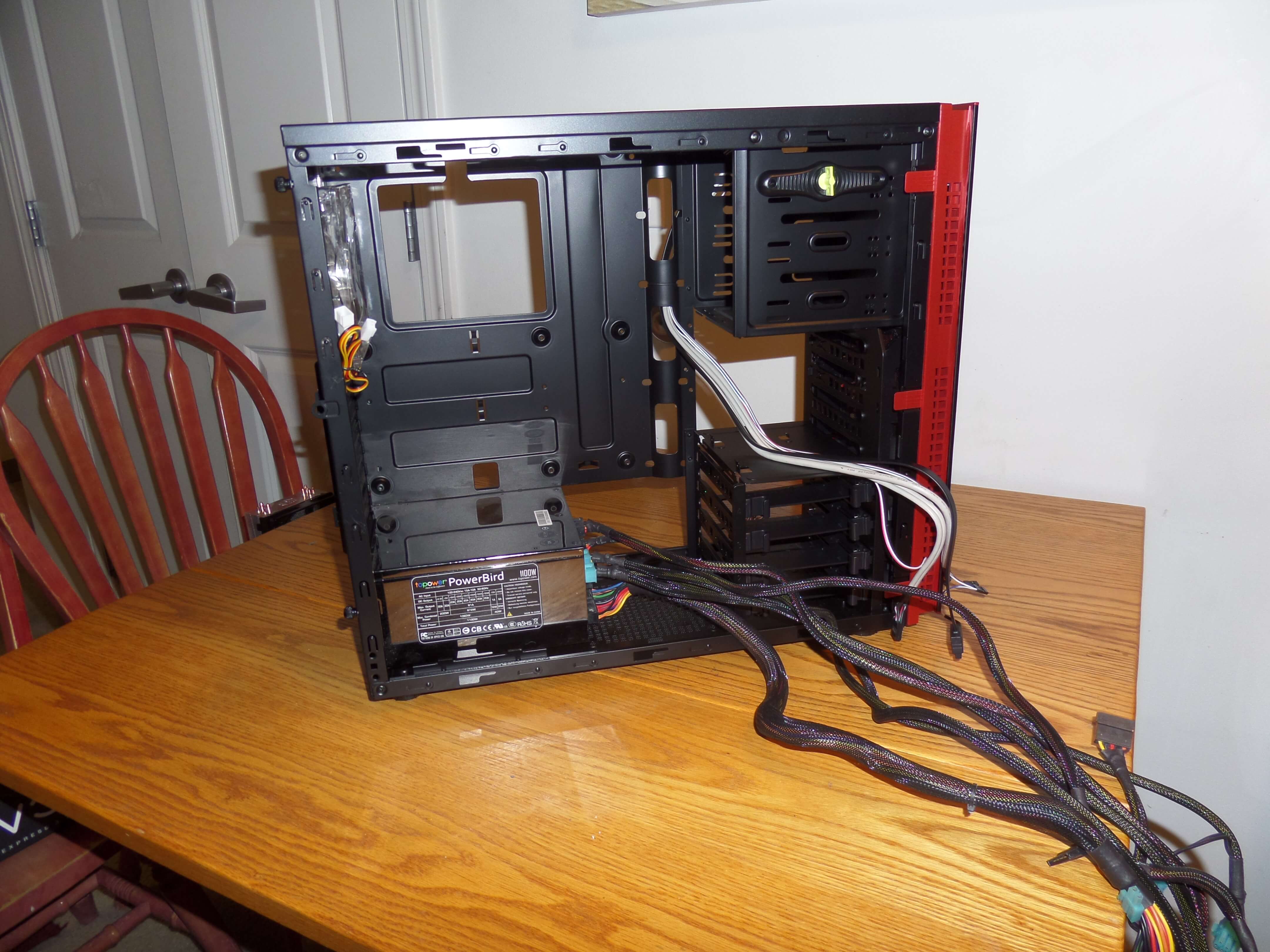 You can see I have a rather large power supply. This made me run into a slight visual issue with the off colored wiring that I was speaking of. I will show you that in a few let me show you how tight of a fit it is with my motherboard in place.