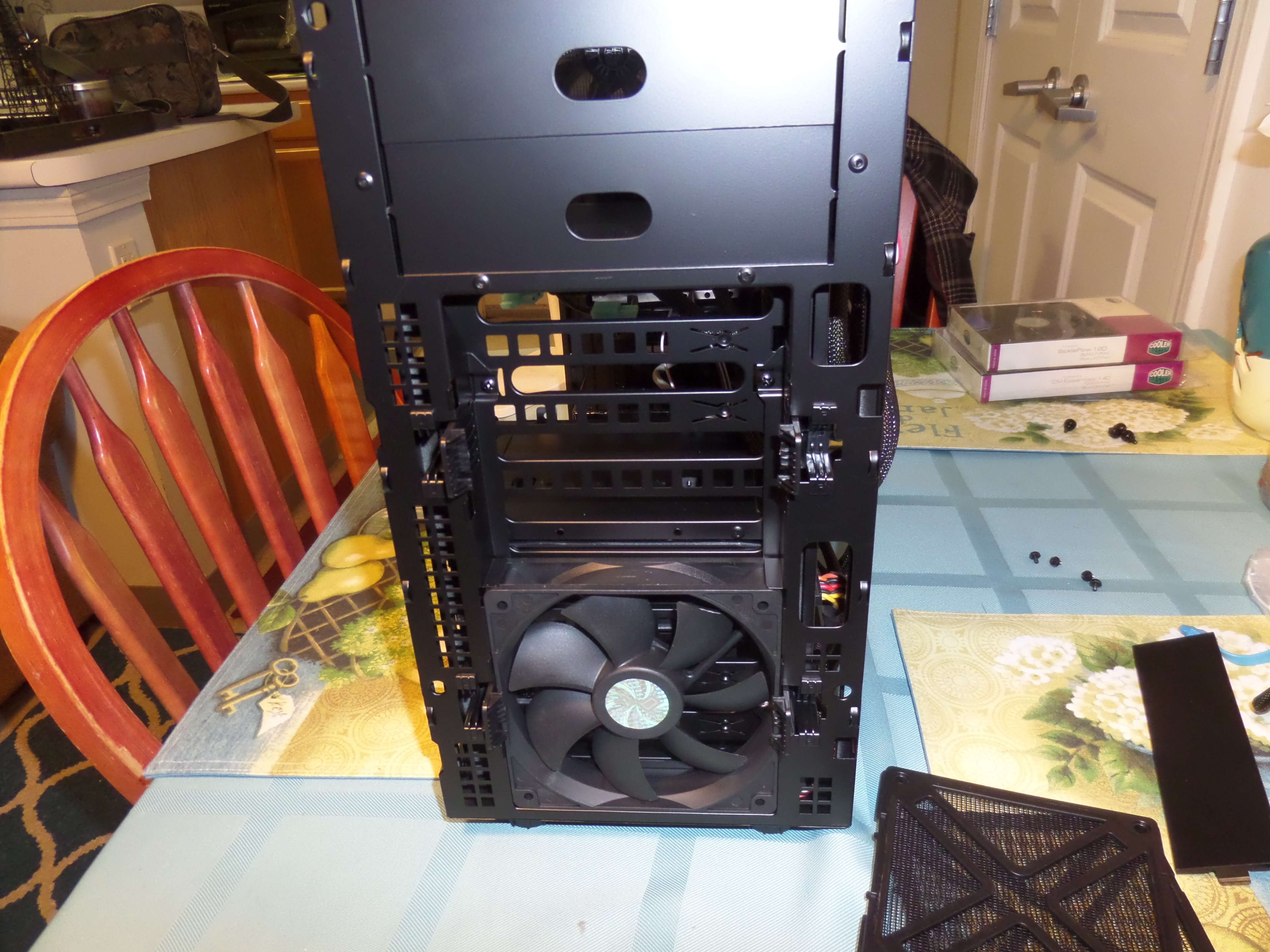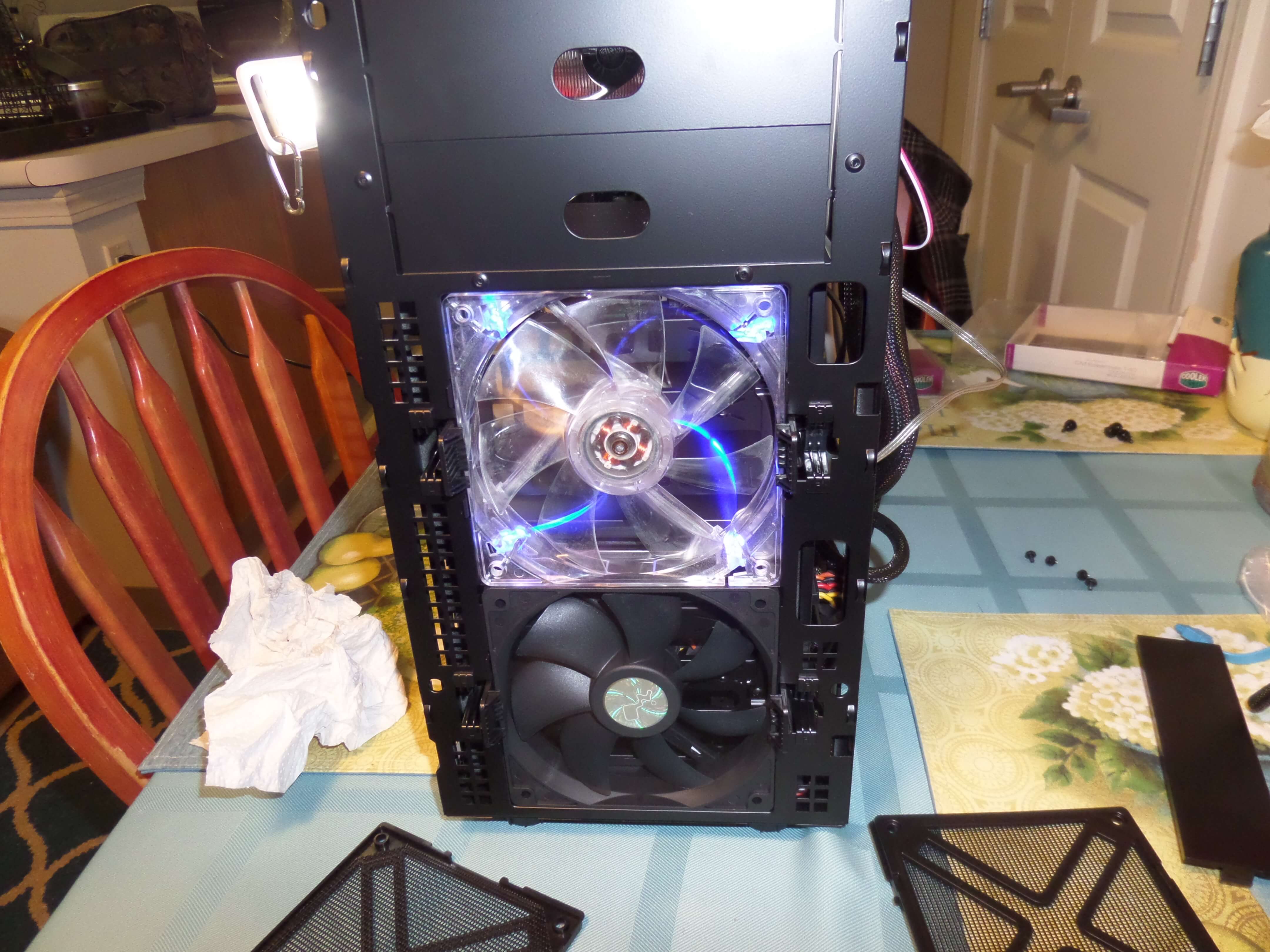 Now before I get into more on the wires and build let me tell you about the cooling capabilities. You have 4 slots for fans. Two in the front. One on the button next to the power supply slot and one on the back of the case. The front two are accessible when you take the front panel off.