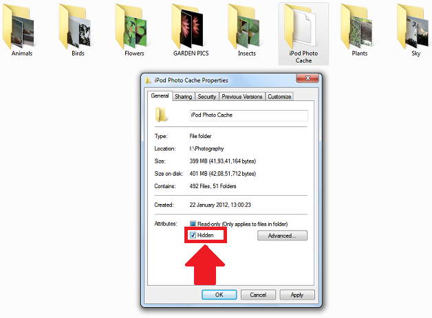 - Select or Deselect Hidden to get the option to apply the change to only folders or internal files and folders too.